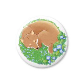 - 柴犬さんと花便り缶バッチ -瑠璃唐草・弥生(3月)-(56mm - ブリキ)2026/03/13