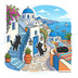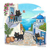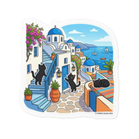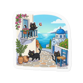 【黒猫シリーズ】サントリーニ島の休日! 絶景と黒猫ステッカー(全2種)