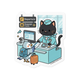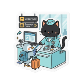 ステッカー - 160 x 160 (mm)【黒猫シリーズ】空の旅へ出発! グランドスタッフ黒猫ステッカー 空港のチェックインカウンターで、元気にご案内♪ 爽やかな水色の制服とスカーフを身にまとった、グランドスタッフの黒猫くんです。 「KIX」のバッジを胸に輝かせ、小鳥のお客さまを笑顔でお迎え。 「Departure(出発)」のサインやフライト情報など、 旅のワクワク感が詰まったデザインに仕上げました。 スーツケースやパスポートケース、PCなどに貼れば、いつでも旅行気分! 耐水・屋外対応の高品質塩ビ素材なので、長旅のお供にもぴったりです。 ●サイズ:100×100mm(標準) / 160×160mm(大判) ●材質:塩ビ(ホワイトタイプ) ●実際の商品には透かし・SAMPLEは一切入りません 大好評の黒猫シリーズ、第14弾! ・第1弾 デートしてよぉ!・第2弾 宝くじ当選祈願!・第3弾 安全運転! ・第4弾 お先にどうぞ!・第5弾 吉祥龍!・第6弾 世界旅行! ・第7弾 星空観測!・第8弾 玄関前でOK!・第9弾 ドラレコ録画中! ・第10弾 ととのう黒猫・第11弾 扉静かに会議中!・第12弾 波乗り黒猫! ・第13弾 サントリーニ島の休日! も好評発売中♡ この子と一緒に、新しい景色を探しに行きませんか? 価格:750円~ ※1点から即製造・発送! 在庫切れゼロ ── この商品はpixivFACTORYで1点ずつ製造されます。 サンプル画像は完成イメージのため、実物と若干異なる場合があります。 実際の商品は耐水・屋外対応の高品質素材で、しっかりとした厚手仕上がりになります。 ご質問・シリーズ追加希望あればDMくださいね♪