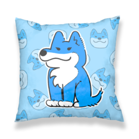 隣のシバは青いクッションカバー