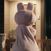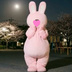 【AI動画・横】月夜の異変、ウサギの顔出し着ぐるみ姿に突如変身した女性