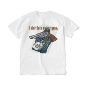 Tシャツ(短納期) - XL - ホワイト(1)この商品はpixivFACTORYで作られた商品です。サンプル画像は完成イメージのため、実物と異なる場合があります。 いつの時代も男のロマンを語るリボルバー。そのシルエットは、まるで静かに語りかけてくるかのように、美しさと力強さを兼ね備えています。このミニマリストアートでは、リボルバーの複雑な形状を、クールな青色で表現しました。シンプルさの中に秘められた力強さが、まさに男の世界を体現しています。 まるで、百発百中の自信を感じさせるこの作品は、見る人に強烈な印象を与えることでしょう。アートが持つ力を再認識させてくれる魅力的な一枚です。""" #アート #ミニマリスト #リボルバー#ハンドガン#カッコいい