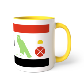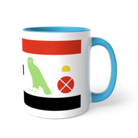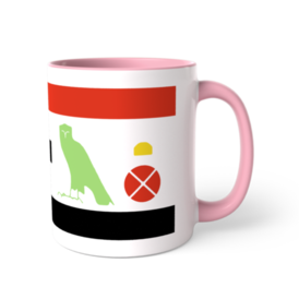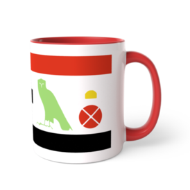ツートンカラーマグカップ - 直径 8.2cm / 高さ 9.5cm(5)古代エジプトのヒエログリフのシルエットでエジプトの言葉(古代エジプト語)と書いたツートンマグです。読み方は左から「エル(言葉)エン(of)ケメト(エジプト)」です。 各ヒエログリフの色はツートンマグのカラバリと同じにしました。 上下の赤と黒の縞はエジプト国旗を意識してます。国旗の真ん中にヒエログリフを持ってきたんです。 この商品はpixivFACTORYで作られた商品です。サンプル画像は完成イメージのため、実物と異なる場合があります。