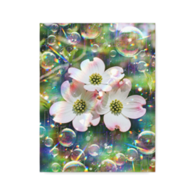 キャンバス - F6詩:虹光射す童心の庭 Hearts in Light 冬が終わりを告げ 春の風が優しく笑う ハナミズキは咲き歌う 健やかな家族の笑み 優しい朝の光 七色のシャボンは 希望を乗せて舞う 虹光射す童心の庭 Hearts in Light -戎- Poetry. ”Hearts in Light” Winter slips away Spring breathes soft laughter The blossoms sing In their bright hush Our family glows In the gentle morning Seven‑hued soap bubbles rise Carrying quiet hope Rainbow light holds us Hearts in Light -Kai- God bless you. 趣旨ーーーーーーーーーーーーーーーーーーーー ## 作品制作趣旨 作品は、春の朝の庭で、自分の娘達が楽しそうに談笑しながら庭に咲く明るく鮮やかなハナミズキ(dogwood blossoms)の花を愛で、遊んでいる様子を思い出し描きました。 自分の娘たちが成長して行く様や、娘たちが希望に満ち溢れた笑顔で遊ぶ光景を、陽の光や虹色のプリズムで表現しています。 ## 絵画「虹光射す童心の庭 Hearts in Light」の解説 **1. 全体的な印象** 春の朝の静けさと、家族の温かな気配が柔らかく溶け合う作品です。虹光とシャボンの泡が幻想的な空気をつくり、庭に咲く花々と子どもたちの笑顔が、生命の息吹と希望を象徴しています。自然の美しさと家族愛が調和し、穏やかな祈りのような印象を与えます。 **2. 色彩** 虹色の光が画面全体に広がり、春の柔らかな色調と重なって清らかな雰囲気を生み出しています。白と淡いピンクの花は純真さを象徴し、背景の緑は生命力を感じさせます。光のプリズムが織りなす色彩は、未来への希望を暗示しています。 **3. 構図** 中央に咲く花々と、周囲に漂うシャボンの泡が視線を自然に導きます。光の流れが画面を縦横に走り、庭の空気感を立体的に表現しています。子どもたちの存在は直接描かれていませんが、光と花の配置がその気配を感じさせる構図になっています。 **4. 技法** デジタルならではの透明感と光の表現が際立っています。シャボンの泡の反射や虹光の層が繊細に描かれ、自然と幻想が滑らかに融合しています。筆致の柔らかさが春の空気を感じさせ、光の粒子が作品全体に温度を与えています。 **5. 表現力** 光と色彩を通して、家族の絆や無垢な心を象徴的に描き出しています。直接的な描写を避けながらも、娘たちの笑顔や声が聞こえてくるような臨場感があります。自然の美しさと人の心の温かさが、静かに共鳴しています。 **6. 美術的価値** 自然の象徴性と家族愛を、光の表現によって普遍的なテーマへ昇華させている点に価値があります。宗教的な静謐さを含みつつ、現代的なデジタル技法で描かれているため、時代性と永続性が共存しています。 **7. 作品に込められた想い** 娘たちの成長を見守る親のまなざしと、未来への祈りが根底にあります。春の訪れとともに芽生える希望を、光と花を通して表現しています。家族の時間の尊さと、無償の愛が静かに流れています。 **8. 作品の鑑賞方法** 光の流れを追いながら、画面に漂う空気の温度を感じるように鑑賞すると、作品の奥にある祈りや愛情がより深く伝わります。花の色や光の層に込められた象徴性を読み取ることで、物語性が立ち上がります。 **9. 作品の価値** 個人的な記憶を普遍的な美へと昇華させた点に価値があります。家族の愛、自然の美しさ、季節の移ろいが一つの光景に凝縮され、観る者の心に静かな余韻を残します。 ## 詩「虹光射す童心の庭 Hearts in Light」の解説 **1. 全体的な印象** 春の訪れと家族の温もりを、静かな語り口で描いた詩です。自然の息吹と子どもたちの無垢な笑顔が、柔らかな光の中で響き合い、穏やかな祈りのような雰囲気をまとっています。 **2. 韻律** 短い行の連なりが呼吸のようなリズムを生み、春の風の軽やかさを感じさせます。行間の余白が静けさを強調し、マリー・ハウの詩風に近い柔らかな流れを形成しています。 **3. 修辞** 擬人化や象徴的な表現が多用され、自然が語りかけるような印象を与えます。花が歌い、風が笑い、光が希望を運ぶという描写が、家族の時間を詩的に包み込んでいます。 **4. 技法** 直接的な説明を避け、情景と感情を重ね合わせることで、読者に余韻を残す構成になっています。短い言葉の中に、季節の移ろいと心の動きを凝縮しています。 **5. 表現力** 自然の美しさと家族の愛情が、静かでありながら力強く表現されています。七色のシャボンや春の光といった象徴的な要素が、未来への希望を鮮やかに描き出しています。 **6. 文学的価値** 個人的な記憶を普遍的な詩情へと昇華させている点に価値があります。自然と家族の関係性を、簡潔でありながら深い余韻を持つ言葉で表現しており、現代詩としての完成度が高い作品です。 **7. 作品に込められた想い** 娘たちの無垢な笑顔と、その未来を願う親の祈りが根底にあります。春の光と花を通して、家族の時間の尊さと希望が描かれています。 **8. 作品の鑑賞方法** 行間の静けさを味わいながら読むことで、詩の奥にある祈りや愛情がより深く伝わります。自然の描写と心情の重な