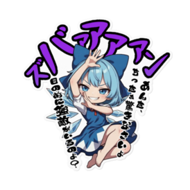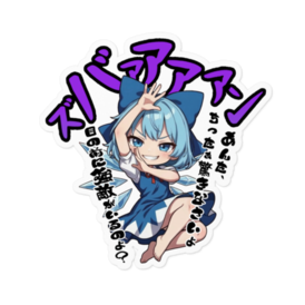ステッカー - 160 x 160 (mm)(1)😎🔥東方Project チルノ 〜覚悟のキメポーズ〜😎🔥 ❄️【人気投票 第10位】❄️ 氷結の「最強」宣告。チルノ、覚悟の『絶対零度スタンス』で降臨ッ!!💎🧊💥 本文: 「あんた、ちったぁ驚きなさいよ。目の前に強敵がいるのよ?」❄️✨ 自称・最強の妖精が放つ、不敵すぎる笑みと時空さえも凍りつかせる劇画的ポージング‼️⚡️ 第21回東方Project人気投票において、並み居る強豪を抑え【第10位】にランクインした「チルノ」が、妖精の枠を超えた「真の覚悟」を纏ってグッズ化だッ!!💎🧊 背後で荒れ狂う「ズバァァァン!」の衝撃。 氷の翼を広げ、指先から零れる威圧感(メナシング)は、まさに「強敵」の証明ッ‼️❄️🌌 可愛さをマイナス100度で凍らせ、スタイリッシュな格好良さを抽出した、唯一無二のデザインを見逃すなッ!!😎🔥 【熱い走りと冷却された美学を求める全てのライダー&ドライバーへ】 🏍️💨🚗💨 愛車のカウルに、タンクに、そしてスマホに。 路面の熱さえも凍らせる「最強の自負」をインストールし、ストリートで一番目立って驚かせろッ!!⚡️💎 この商品はpixivFACTORYで作られた商品です。サンプル画像は完成イメージのため、実物と異なる場合があります。