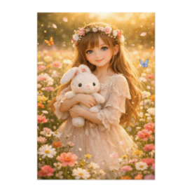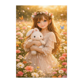 ポスター - B2この商品はpixivFACTORYで作られた商品です。サンプル画像は完成イメージのため、実物と異なる場合があります。 花に包まれた静かな世界で、少女は一匹のうさぎを優しく抱きしめるポスター作品です。 やわらかな光と風に揺れる花々、穏やかな時間が流れる幻想的な雰囲気が特徴です。 「守りたいもの」と「優しさ」をテーマにしたファンタジーシリーズの序章として描かれています。 インテリアとしても取り入れやすい、癒しと温かさを感じられる一枚です。