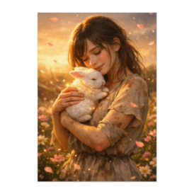 ポスター - B2この商品はpixivFACTORYで作られた商品です。サンプル画像は完成イメージのため、実物と異なる場合があります。 激しい戦いの後、少女がうさぎを優しく抱きしめる瞬間を描いたポスター作品です。 傷や汚れを残しながらも、安らぎと絆が静かに広がるシーンが印象的です。 物語の余韻を感じさせる一枚として、緊張から解放された穏やかな時間を表現しています。 温かい光と柔らかな雰囲気が、見る人の心を優しく包み込みます。
