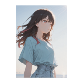 ポスター - B2この商品はpixivFACTORYで作られた商品です。サンプル画像は完成イメージのため、実物と異なる場合があります。 青い空と海の中で、風と一体になるような瞬間を描いた作品です。 流れる髪と横顔のシルエットが、静かで洗練された美しさを演出し、 透明感とともに、どこか芯のある魅力を感じさせます。 シンプルでありながら、空気感と奥行きを楽しめる一枚です。
