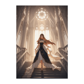 ポスター - B2この商品はpixivFACTORYで作られた商品です。サンプル画像は完成イメージのため、実物と異なる場合があります。 荘厳な大聖堂の中、光に導かれるように歩く少女。 差し込む光と舞うドレスが、神秘的で美しい世界観を演出します。 非日常感と華やかさを兼ね備えた、存在感のある一枚です。 インテリアの主役として飾れる作品です。