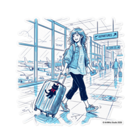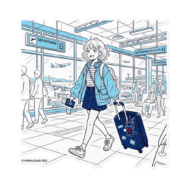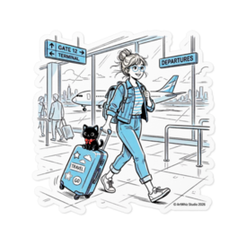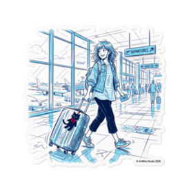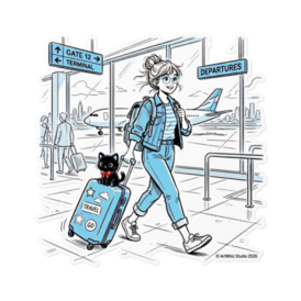 ステッカー - 160 x 160 (mm)(2)【黒猫シリーズ】Traveler's Blue! 旅する女の子と黒猫ステッカー(全3種) 目的地はどこにしよう? 爽やかなブルーのラインアートで描く、旅の始まりの一コマ。 黒猫のぬいぐるみを相棒に、空港ロビーを歩く 女の子たちの物語をステッカーにしました。 今回は、キャラクターの個性が光る3つのデザインをご用意しました! 【Type A:Music & Trip】 ヘッドホンでお気に入りの曲を聴きながら。 カジュアルなミニスカスタイルで、自由気ままな 一人旅の空気感を詰め込んだデザインです。 【Type B:Bun & Glasses】 お団子ヘアにメガネ、デニムのセットアップ。 「TRAVEL」ステッカーを貼ったスーツケースに 黒猫を乗せた、知的でオシャレなデザインです。 【Type C:Ready to Go】 デニムジャケットを羽織り、パスポートを手に。 シルバーのスーツケースに大きな赤いリボンの黒猫を連れて、 颯爽と歩くアクティブなデザインです。 耐水・屋外対応の高品質塩ビ素材。 スマホやノートPCはもちろん、本物のスーツケースに 貼って旅の相棒にするのもおすすめです♪ ●サイズ:100×100mm(標準) / 160×160mm(大判) ●材質:塩ビ(ホワイトタイプ) ●実際の商品には透かし・SAMPLEは一切入りません 大好評の「黒猫シリーズ」、第17弾! 「青い線画」の透明感ある世界をお楽しみください✨ ・第1弾~第16弾も好評発売中♡ 価格:750円~ ※1点から即製造・発送! 在庫切れゼロ ── この商品はpixivFACTORYで1点ずつ製造されます。 サンプル画像は完成イメージのため、実物と若干異なる場合があります。 実際の商品は耐水・屋外対応の高品質素材で、 しっかりとした厚手仕上がりになります。 ご質問・シリーズ追加希望あればDMくださいね♪