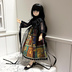 図書館柄の生地を使用した黒のワンピースです。ハルモニアブルーム、ハルモニアハミング、ニアハルモニア、rurukoが着用可能です。