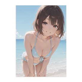 ポスター - B2この商品はpixivFACTORYで作られた商品です。サンプル画像は完成イメージのため、実物と異なる場合があります。 波打ち際で見せる、少し大人びたやわらかな表情。 近距離の構図と自然な光の反射が、 リアルで親しみやすい空気感を生み出しています。 空間に優しい印象を与える、落ち着いたビーチポスターです。