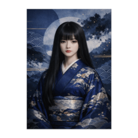 ポスター - B2この商品はpixivFACTORYで作られた商品です。サンプル画像は完成イメージのため、実物と異なる場合があります。 深い藍色と繊細な和柄が織りなす、静かで洗練された日本人形風美女アート。 抽象的な水墨表現と幾何学的な和模様が融合し、落ち着きと高級感を感じさせる一枚です。 空間に知的でクールな印象を与える、現代和アート作品。 モダンなインテリアや落ち着いた空間に最適です。