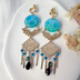千代金丸をイメージした耳飾りです。 金具部分を除き全長は約10cm、金具を含めた片耳の重さは約8gです。 レジン、メタルパーツ、天然石ターコイズ、ワロフスキー、チェコビーズを主に使用しています。 レジンはしっかりと硬化していますので安全ですが、念のためレジンアレルギーのかたはご注意ください。