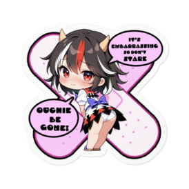 ステッカー - 160 x 160 (mm)🩹💕【愛車のキズを可愛く変身!】東方幻想キズデコ!ステッカー 鬼人正邪 🩹💕 【傷?それ勲章だろ!正邪が愛車に「反転手当て」参上】 「あーあ、相棒にキズ…もう天罰落ちた気分」 → 待て待て!鬼人正邪が「OUCHIE BE GONE!」でひっくり返しちゃうよ! 傷跡が一瞬で「照れ隠しチャームポイント」に大変身(笑) 「恥ずかしいからジロジロ見ないで!」って正邪が必死に隠してる姿… 普段の不敵顔どこいった?このギャップ萌えで傷より目立っちゃうかも!? バイクのタンク、車のバンパー、PCのへこみ…どこでもペタッ! 正反対の可愛さで「不名誉」→「勲章」に反転完了 !反転!反転!第21回人気投票35位の下克上鬼を、傷だらけの日常に連れてこい! 愛車が「正邪仕様」になったら、もう傷見るたびニヤニヤ止まらんぞ〜 この商品はpixivFACTORYで作られた商品です。サンプル画像は完成イメージのため、実物と異なる場合があります。