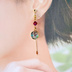 日本号をイメージした耳飾りです。 金具部分を除き全長は約6cm、金具を含めた片耳の重さは約3gです。 メタルパーツ、スワロフスキーを主に使用しています。
