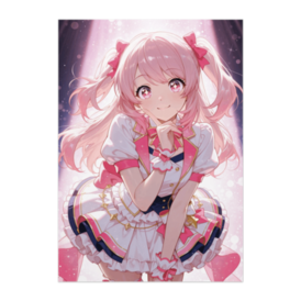 ポスター - B2この商品はpixivFACTORYで作られた商品です。サンプル画像は完成イメージのため、実物と異なる場合があります。 きらきらと輝くステージの中で、愛らしい笑顔を見せるピンク髪のアイドル。 やわらかな光と輝きに包まれた空間が、可愛さと華やかさをより引き立てます。 見ているだけで元気になれる、明るくポジティブな一枚です。 お部屋に飾ることで、毎日にときめきと彩りをプラスしてくれます。
