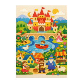 ポスター - B2この商品はpixivFACTORYで作られた商品です。サンプル画像は完成イメージのため、実物と異なる場合があります。 色とりどりの紙を重ねて作られた、やさしいファンタジー王国の世界。 城、橋、川、そして小さな登場人物たちが、 まるで絵本の1ページのように広がります。 手作り感あふれる紙コラージュの質感と、 温かくカラフルな配色が魅力の一枚です。 お部屋に飾るだけで、やさしい物語のはじまりを感じられるアートポスターです。