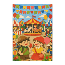 ポスター - B2この商品はpixivFACTORYで作られた商品です。サンプル画像は完成イメージのため、実物と異なる場合があります。 カラフルで楽しいファンタジーカーニバルの世界。 メリーゴーランド、風船、お菓子、 笑顔あふれる人々のにぎやかな時間が広がります。 紙の切り貼りで表現されたポップで明るい構図が、 見ているだけで楽しい気分にしてくれる一枚。 子供から大人まで楽しめる、元気で華やかなポスターです。