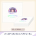 1.オーロラアクリルスタンド プレートサイズ:150×150mm(本体サイズはキャラによって変動)、 アクリル厚3mm、脚付き、枠あり仕様 2.ラメ入りアクリルキーホルダー 本体サイズ:約40mm×60mm、 アクリル3mm厚、ナスカン付 3.スタンド付きホログラム仕様缶バッジ サイズ:Φ76mm ピン付き、スタンド付き 4.外装箱 サイズ:縦186mm×横186mm×深さ27mm(外寸) 天面箔押しあり、OPP包装、ミフタ仕様 5.バースデーカードデータ 形式:PNG形式 各データのサイズは以下の通りです。 ・壁紙:1080x1920 ・壁紙(長尺):1080x2377 ・SNS用アイコン:800x800