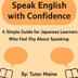 Speak English with Confidence is a digital ebook created for Japanese students who want to improve their spoken English in a simple and supportive way. It helps learners build confidence, practice useful expressions, and speak more naturally in everyday situations. This ebook is ideal for learners who feel shy about speaking, worry about making mistakes, or want gentle encouragement while studying. With practical examples and easy-to-follow guidance, it supports both English learning and speaking confidence. Speak English with Confidence』は、シンプルで手厚いサポートのもと、英会話力を向上させたい日本の学習者のために作成されたデジタル電子書籍です。この教材は、学習者が自信をつけ、実用的な表現を練習し、日常の場面でより自然に話せるようになるようサポートします。 この電子書籍は、話すことに恥ずかしさを感じている方、間違いを犯すことを心配している方、あるいは学習中に優しく励まされたい方に最適です。実践的な例文とわかりやすい指導を通じて、英語学習と会話への自信の両方を育みます。