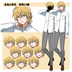 白シャツにスラックスを着た金髪の男性の立ち絵素材です。 標準立ち絵に加えて表情差分9種、肌と顔を黒塗りしたNPC向け立ち絵があります。