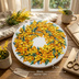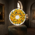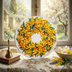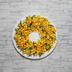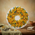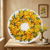 油絵 原画「幸せを呼ぶミモザの輪」ミモザ リース 絵画 花 インテリアアート 一点物 ナチュラルインテリア・北欧風のお部屋に インテリア