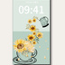 ひまわりティータイム|セージグリーン|夏のスマートフォン壁紙(Season Series)