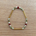 内周 : 15.5 cm 素材 : 天然石 / 淡水パール / ヴィンテージビーズ / ビーズ / ゴム 赤い実のようなレッドアゲートを中心に、淡水パールとヴィンテージゴールドビーズを合わせました。 若葉や小さな実が実る庭のような、アンティーク調の落ち着いた色合いのブレスレットです。 光の当たり方によって、ライトアクアビーズとゴールドがさりげなく輝きます。 季節を問わず、春や秋の装いにも合わせやすい色合いです。 ブレスレットは透明ゴムを使用しており、内周15.5cmになっています。 【レッドアゲート(瑪瑙)】 レッドアゲート(瑪瑙)は古くから装飾品として親しまれ、 お守りのような存在として大切にされてきた石といわれています。 人との縁やつながりを大切にし、パートナーや周囲との関係を穏やかに整えてくれるといわれています。安心感や安定をもたらし、心を落ち着かせてくれる石とされています。 【コンディション】 ヴィンテージビーズには、小さな傷や汚れが見られる場合がございます。あらかじめご了承ください。 *撮影時には可能な限り実際の色味を再現するよう努めておりますが、完璧ではない場合がございますことをご了承ください。 *返品はお受けできません。 *納品書、領収書は発行いたしません。