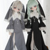Girl S size:MDD~42cm doll 🖤セット内容: ❶シスタードレス ❷シスターヘッドドレス ❸付け襟 ❹ソックス ❺クロスネックレス 5点セットで、全4色展開となります。 セット内容の変更や付属品のカラー変更はできませんので、あらかじめご了承ください。