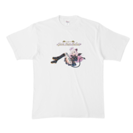 Tシャツ - XL - 白シオン・バット・ベリアルの2026年新衣装(キービジュアル)をプリント素材にしています。 イラスト デザイン :尾幡りあん様 ネームロゴ デザイン:李姫様 ※この商品はpixivFACTORYで作られた商品です。サンプル画像は完成イメージのため、実物と異なる場合があります。
