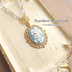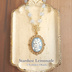 花づくりの盛んなその町では、 それぞれ家の象徴である花のカメオを身に着ける風習があるそうです。 そんな物語をイメージした、白い花束が描かれた水色のカメオのネックレスです。 花のようなコネクターに繋いで、チェーンにはフロスト加工のビーズを飾りました。 ※カメオの色にはややムラがございます。 (模様の部分も水色っぽかったり、逆に背景も白っぽくなっている等) ご了承の上ご注文いただけましたら幸いです。 ☆ ☆ ☆ 【サイズ】 チェーン:約50cm+アジャスター約5cm トップ全長(コネクターから下):約5.4cm カボション:2.5×1.8cm チェーンの長さ変更はご注文前にメッセージにてご相談ください。 (追加料金をいただく場合もございます) 【カラー】 金具:ゴールド ※作品の写真にAI学習対策保護フィルターを適用しています。閲覧に支障がない程度に抑えておりますが、僅かにノイズ等が見られる場合がございます。ご容赦いただけますと幸いです。 ※全ての作品(画像・説明文を含みます)の生成AI学習への使用を禁止します。