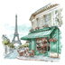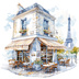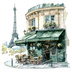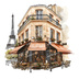 【商用利用可】パリのカフェコーナー(水彩パリスケッチ)クリップアート20点セット|高解像度・透過PNG|印刷OK|コラージュ・ジャンクジャーナル素材|即ダウンロード