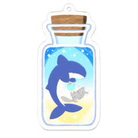 「暑がるチンチラをうちわで扇ぐサメ」のアクリルキーホルダー