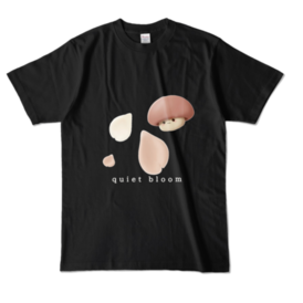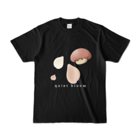 カラーTシャツ - XL - ブラック (濃色)淡いきのこモチーフがくっきり映えるブラックTシャツ。 A calm and minimal “quiet bloom” design with soft mushroom shapes. Strong contrast makes the artwork stand out while keeping a gentle mood. Daily wearにも合わせやすい、落ち着いた1枚です。 写真の色味は、光の当たり方や画面環境により実物と少し異なる場合があります。