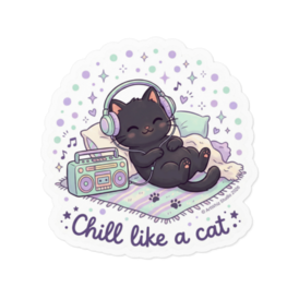 ステッカー - 160 x 160 (mm)「Chill like a cat(猫みたいにくつろごう)」 毎日を忙しく駆け抜けているあなたへ。 お気に入りの音楽を聴きながら、 猫のようにのんびりリラックスしませんか? 黒猫シリーズ「第22弾」となる今回は、 心も体も完全にオフモードにする 「チル」な時間をテーマにしました。 ふかふかのクッションに寝転んで、 ヘッドホンから流れる音楽に ゆったりと身をゆだねるとろけた表情。 レトロ可愛いラジカセとパステルカラーの装飾が、 あなたの持ち物をエモく彩ります。 耐水・屋外対応の高品質な素材ですので、 ノートPCやスマホケース、 お気に入りのタンブラーなどに貼って、 いつでもホッと一息つける 「心の避難所」としてお迎えしてあげてください。 --- ■ サイズ ・100 × 100mm(標準) ・160 × 160mm(大判) ■ 材質 ・塩化ビニール(ホワイトタイプ) ・耐水、耐候(屋外対応)仕様 ※実際の作品には「SAMPLE」の文字は入りません。 ※この商品はpixivFACTORYで作られるオンデマンド商品です。 --- ■ 大好評の黒猫シリーズ、続々展開中! ArtWhiz Studioでは、「伝えるビジュアル」を大切に、 様々な表情の黒猫シリーズをお届けしています。 ・第1弾〜第21弾も好評発売中 (お先にどうぞ / デートして! / 星空観測 / 置き配 / サウナ / 在宅ワーク / 波乗り / がんばりすぎない / 生きてるだけで満点 / 明日から本気だす、など) 自分を甘やかしたい日のお供に、 この子と一緒に心地よい時間を過ごしませんか? --- ■ 発送について この商品はpixivFACTORYで1点ずつ製造されます。 サンプル画像は完成イメージのため、 実物と若干異なる場合があります。 しっかりとした厚みのある、 高品質な仕上がりをお楽しみください。 ご質問・シリーズ追加希望などあれば、 お気軽にDMください。