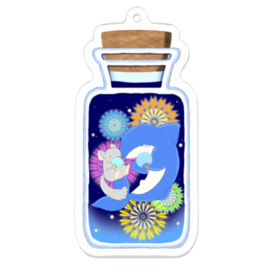 「花火と、うちわを持ったチンチラとサメ」のアクリルキーホルダー