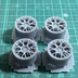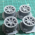 RE-V7自作ホイール。1/24スケールで18インチになるようにサイズを設定しており、1台分の4本のホイールの商品になります。 ※ホイールのみの購入ではタイヤは付属しません。タイヤ付セットが単品よりお得になっております。写真の見本品は塗装されています。 ホイールサイズ(18インチ) 外径 約20.8mm 横幅 約11mm PCD114.3 光造形式8K 3Dプリンターで印刷し、積層ピッチは0.2mmです。2次硬化、洗浄は実施済み。 現品は無塗装、形成色はグレーになります。当製品はレジン製で加工にスキルが必要です。中級者以上推奨。 材質はレジンですのでプラモデル用接着剤では接着できません。3Dプリンタで印刷する関係上、積層痕が発生しています。やすりで表面を磨くか、サーフェイサーを吹いたうえで塗装すると積層痕が軽減されます。 サポート材を切り離す際はニッパーなどで一つずつ切り出してください。無理な力がかかると本体にダメージが入る場合があります。 形成色がマーブル状になる場合がございますが、レジン樹脂の色素の沈殿によるもので、そのままお使いいただけます。
