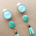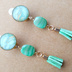 水彩ガラスカボションとミニタッセルのイヤリング(A)