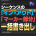 「もう、書き出し待ちでパソコンの前に張り付く必要はありません。」 イン・アウト間の複数シーケンス書き出しはもちろん、「マーカーを打った箇所ごとの一括書き出し」にも対応。Adobe Media Encoderとも連携し、書き出し時の手間を無くすPremiere Pro拡張機能です。