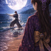 A serene and atmospheric illustration set on a moonlit beach, where a lone samurai practices under the glow of a full moon while being quietly watched from afar. The gentle waves, shimmering reflections, and soft night sky create a calm yet powerful moment frozen in time. Perfect for personal use such as wallpapers, prints, or creative inspiration. Product Details: A4 Size (High Resolution) PNG Format Instant Download