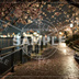 夜桜の余韻|川沿いの情緒背景素材 10枚セット
