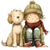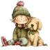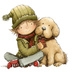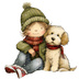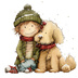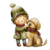 【商用利用可】冬の男の子と犬(水彩ウィンターキッズ&ドッグ)クリップアート16点セット|高解像度・透過PNG|雪遊び・コラージュ・ジャンクジャーナル素材|即ダウンロード