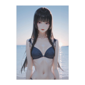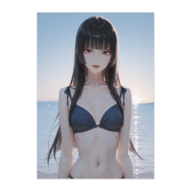 ポスター - B2この商品はpixivFACTORYで作られた商品です。サンプル画像は完成イメージのため、実物と異なる場合があります。 穏やかな夕暮れの海辺で、静かに佇む少女を描いたアートポスターです。 ネイビーカラーのビキニと柔らかな光が、落ち着いた雰囲気と透明感を引き立てます。 お部屋に上品でリラックスした空気を取り入れたい方におすすめの一枚です。
