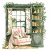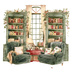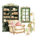【商用利用可】コージーヴィンテージ読書部屋(水彩リーディングルーム)クリップアート15点セット|高解像度・透過PNG|暖かいインテリア・コラージュ・ジャンクジャーナル素材|即ダウンロード