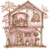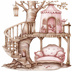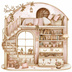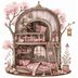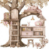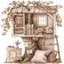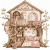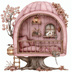 【商用利用可】妖精ツリーハウス室内(水彩フェアリーインテリア)クリップアート20点セット|高解像度PNG/JPG|森の家・ファンタジー・コラージュ・ジャンクジャーナル素材|即ダウンロード