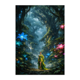 ポスター - B2この商品はpixivFACTORYで作られた商品です。サンプル画像は完成イメージのため、実物と異なる場合があります。 光り輝く植物と深い森の中に佇む女性。 自然の神秘とファッションが融合した、 幻想的で静かな世界観を表現した作品です。 鮮やかな色彩と奥行きのある構図が、 見る人を物語の中へ引き込みます。 癒しと神秘を感じるインテリアアートとしてもおすすめの一枚です。