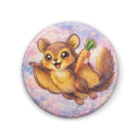 缶バッジ - 57mmふわっと滑空して、静かに暮らす。 余計なものは持たない、食べない、 こだわらない。 自然の中で自分のペースを守る ムササビ。 どこか自由で、少しだけストイック。 やさしさと距離感を持った、 静かな生き方のキャラクター。