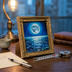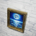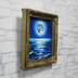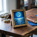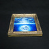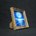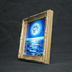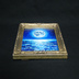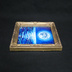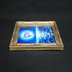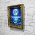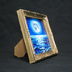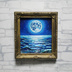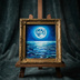【蒼の深淵に眠る光】デスクに飾る小さな油絵 / 青い海の幻想風景 ミニ色紙 額縁付き