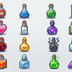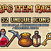【ドット絵素材】RPG初心者村 探索アイテム&ポーション 32種セット (背景透過PNG)
